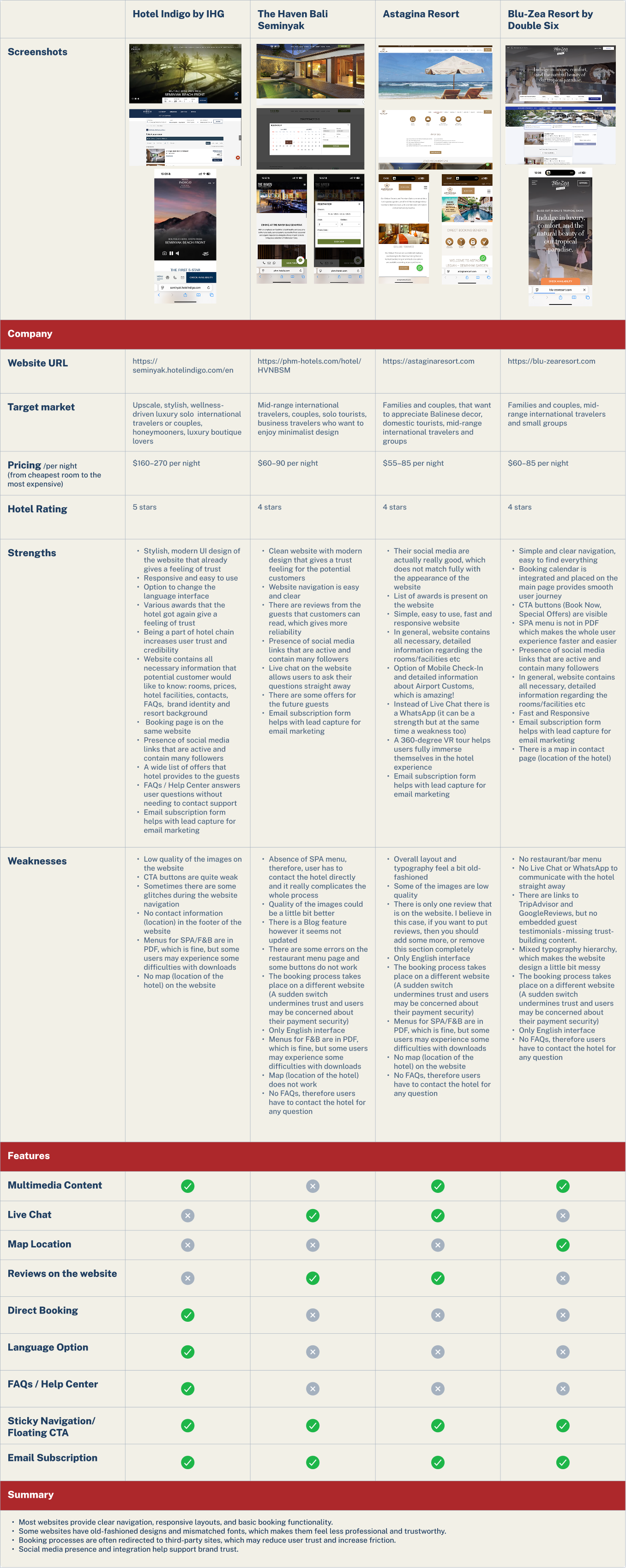 After reviewing the original website, I wanted to see how other Bali hotels attract and engage visitors online. To answer that, I explored several competitors to uncover what makes their digital experience trustworthy and easy to navigate.